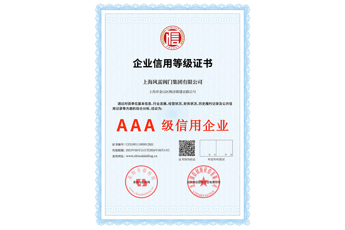 AAA企業(yè)信用等級證書