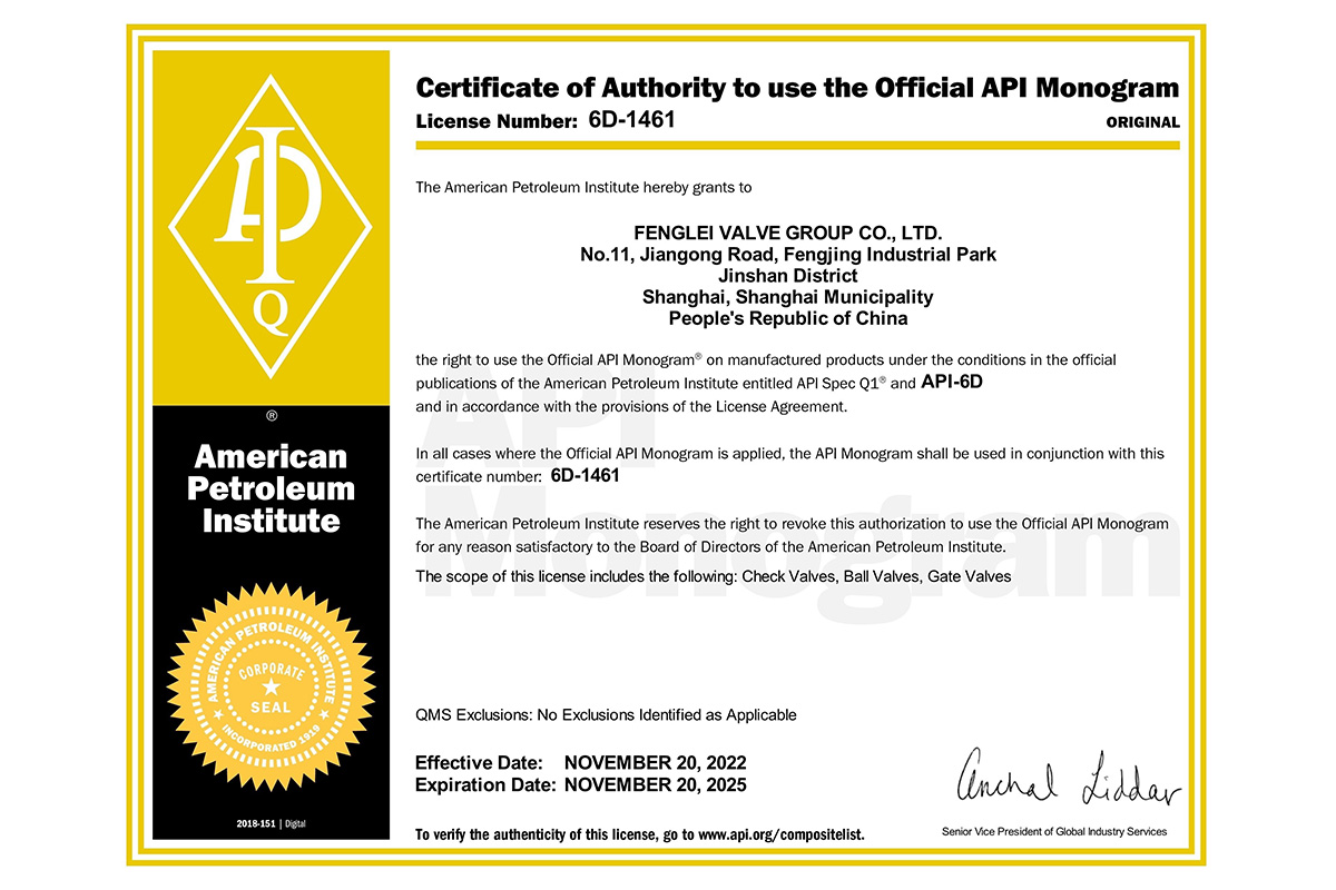 API 6D美國石油協(xié)會認(rèn)證